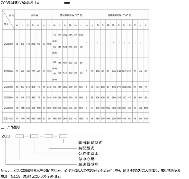 減速機型號 | ZQD350 | ZQD400 | ZQD500 | ZQD650 | ZQD850 | ZQD1000 |