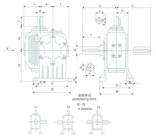 平面包絡(luò)環(huán)面蝸桿減速器是一種新興的傳動(dòng)裝置,其承載能力大,傳動(dòng)效率高,結(jié)構(gòu)緊湊、合理。這種減速器可以廣泛地應(yīng)用于各種傳動(dòng)機(jī)械中的減速傳動(dòng),如冶金、礦山、起重、化工、建筑橡塑船舶等行業(yè)以及其它機(jī)械設(shè)備上,適用工作環(huán)境溫度為—40℃~+40℃,輸入軸轉(zhuǎn)速不大于1500轉(zhuǎn)/分,蝸桿軸可反兩面方向旋轉(zhuǎn)。