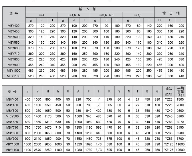 型號MBY400MBY450MBY500MBY560MBY630MBY710MBY800MBY900MBY1000MBY1100 MBY系列邊緣傳動磨機減速機