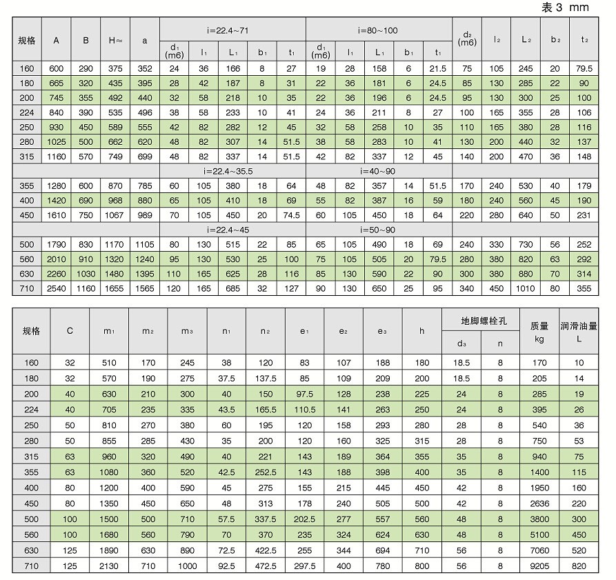 ZSY315型減速機包括: ZSY160,ZSY180,ZSY200,ZSY224,ZSY250,ZSY280,ZSY315,ZSY355, ZSY400,ZSY450,ZSY500,ZSY560,ZSY630,ZSY710。